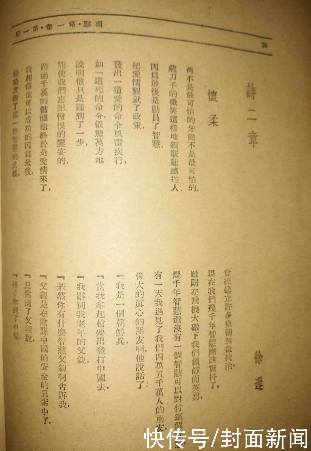 in在第一期The Vertex中,徐驰写了两篇文章。一是《诗词作文》第一部发表的《诗词第二章》(《怀柔》、《书语》)。关于这两首诗,徐驰晚年曾在《江南小镇》中评论道:“五月,当时在湖南教书的王舒和艾青出版了诗刊。在两位编辑的名义下,名为《顶点》,我写的诗很差……” 徐驰先生太谦虚了,现在读这两首诗,他还有意思。